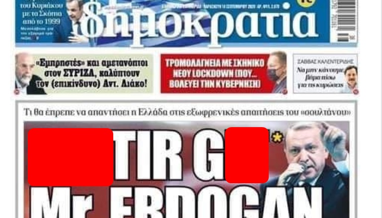 استنكرت الحكومة التركية عنوانا، نشرته صحيفة يونانية واعتبرته مهينا للرئيس رجب طيب إردوغان وحثت أثينا على اتخاذ إجراء حيالها.