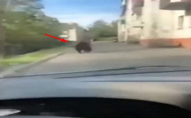 قام سائق سيارة بتصوير دب بالغ يتجول في أحياء مدينة بيتروبافلوفسك كامتشاتسكي الروسية، وظهر الدب في الفيديو وهو يهرب بعيداً.