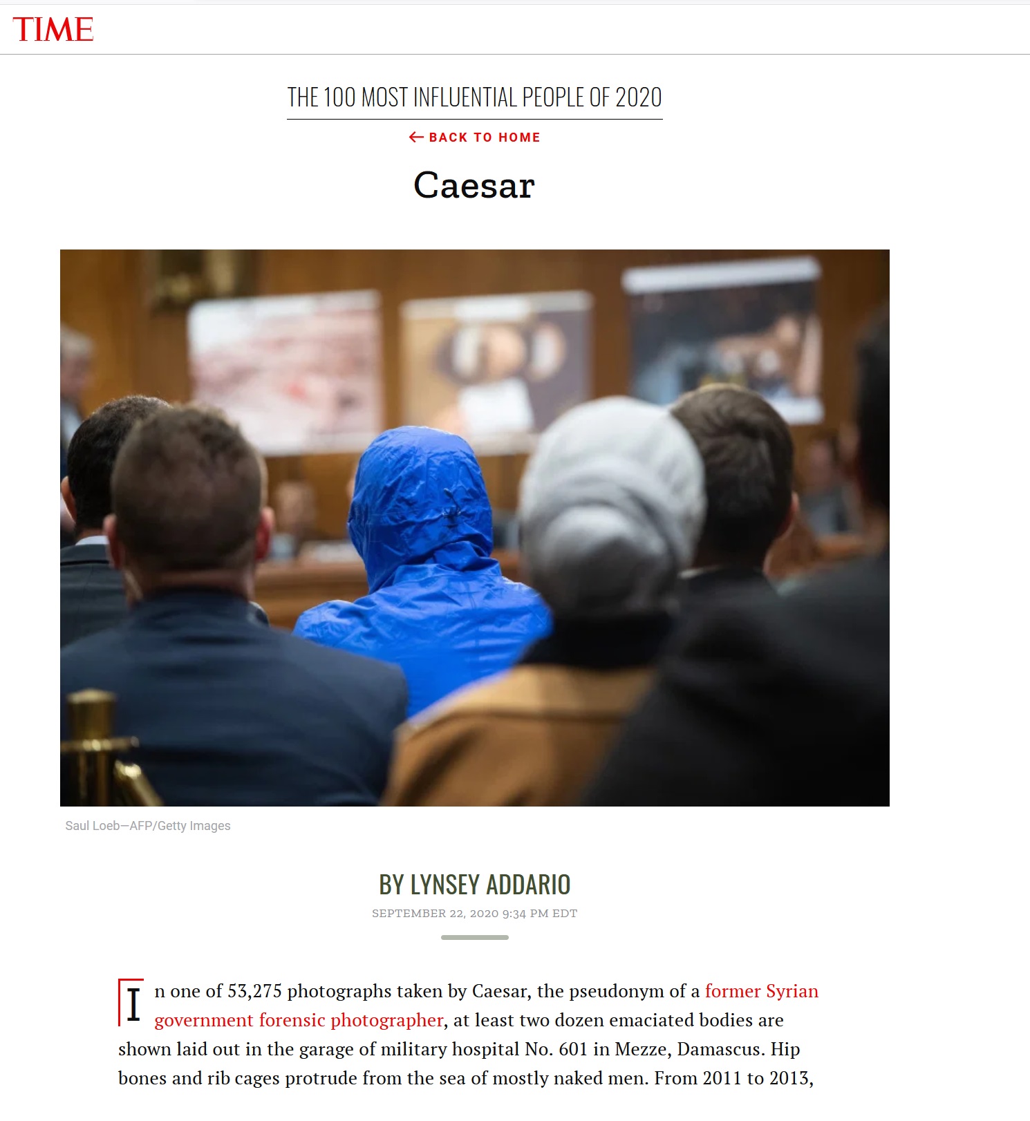 كاشف جرائم بشار الأسد المروعة في قائمة ” أكثر 100 شخصية مؤثرة في العالم عام 2020 “