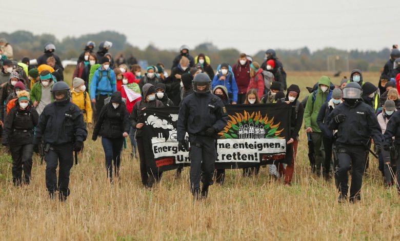 وأضافت الشرطة أن العديد من المحتجين تسلقوا فوق أحد أقبية إنتاج الفحم التابع لشركة “فايسفايلر” لإنتاج الفحم الحجري بالقرب من آخن، شمال غربي ألمانيا.