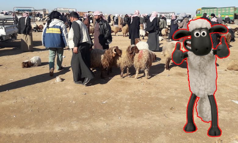 عرض كبش للبيع بمبلغ 5 ملايين ليرة سورية في سوق المواشي بمحافظة الرقة، دون أن يقوم أحد بشرائه.