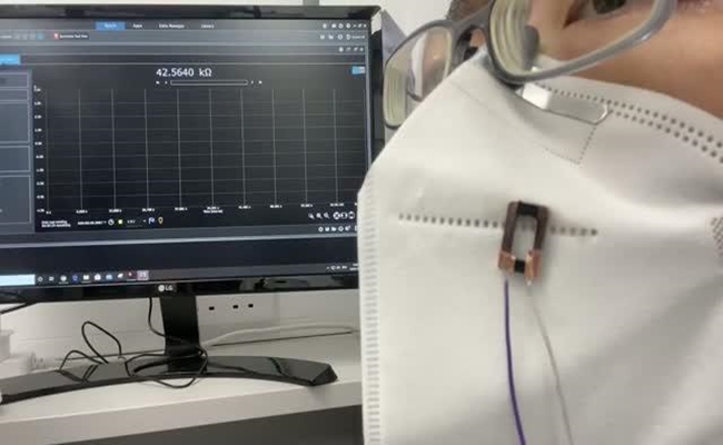 لإثبات إمكانات الألياف، استخدم آندي وانغ، طالب الدكتوراه في الهندسة بجامعة كامبريدج، التقنية الجديدة لقياس مقدار رطوبة التنفس التي تسربت من خلال غطاء وجهه بمعدلات تنفس مختلفة وأثناء السعال.