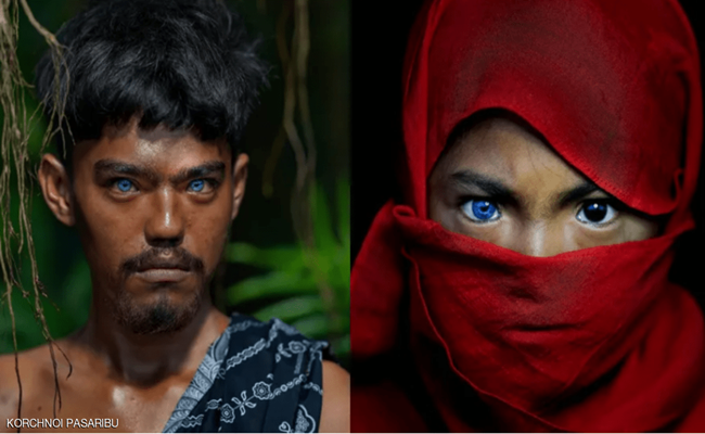 المألوف وسط الآسيويين هو أن يكون لون العيون بنيا، لكن صورًا جرى نشرها، مؤخرا، على منصات التواصل الاجتماعي، كشفت أن بعض أهالي قبيلة إندونيسية يمتازون بعيون زرقاء وناصعة.