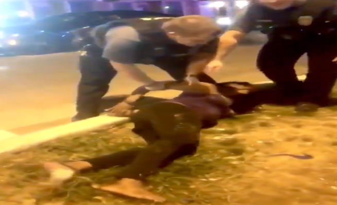 انتشر مقطع فيديو لشرطي أمريكي يسقط امرأة حامل من أصول إفريقية أرضاً.