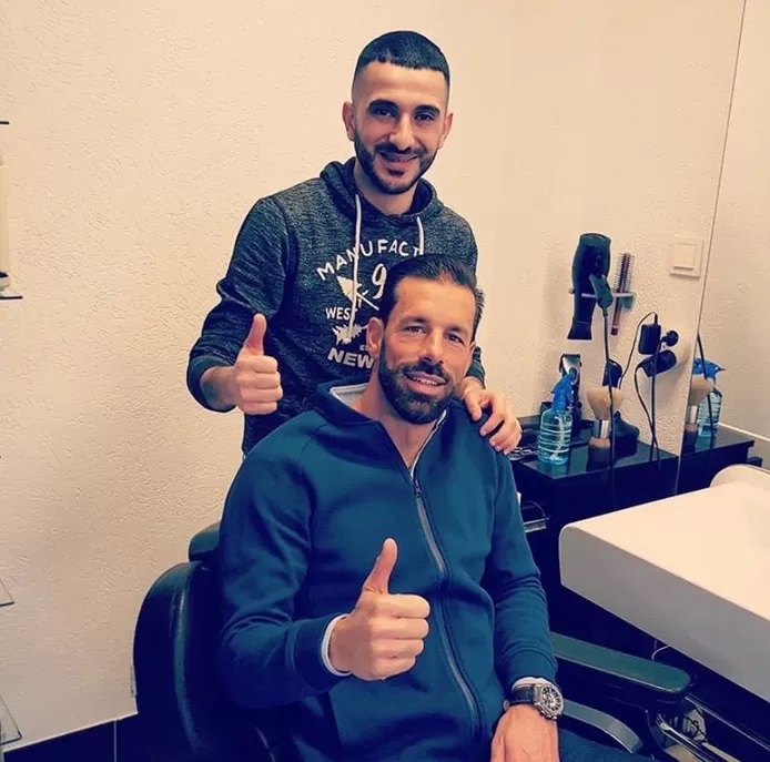 ونشرت الصحيفة صورة لمحمد وهو يصفف -في وقت سابق- شعر نجم كرة القدم الهولندي رود فان نستلروي.