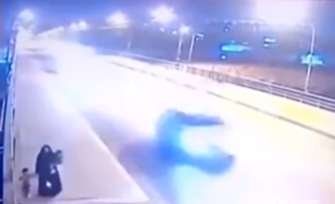 وتداول نشطاء على نحو واسع مقطع الفيديو الذي يبدو أنه تم تصويره مساء الجمعة، حيث قال بعضهم إنه لسيدة أقدمت على فعلتها بسبب خلافات مع طليقها والد الطفلين البريئين.