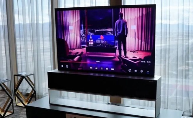 كما يتميز التلفاز بشاشة مرنة من نوع (OLED) بقياس 65 إنشًا تستفيد من تقنية البكسل الذاتية الإضاءة والتحكم الفردي في التعتيم لتقديم جودة صورة فائقة.
