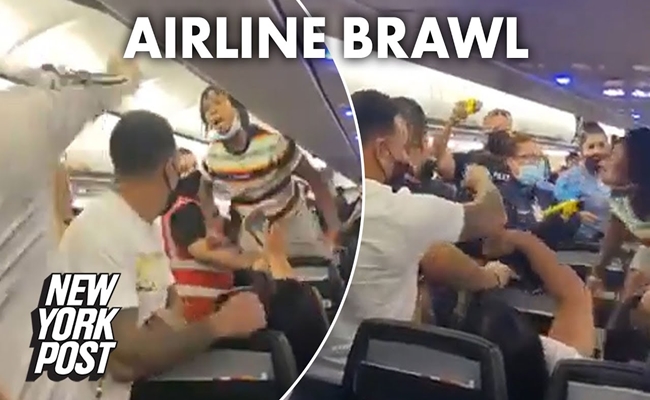 عراك جماعي على متن طائرة أمريكية ( فيديو )