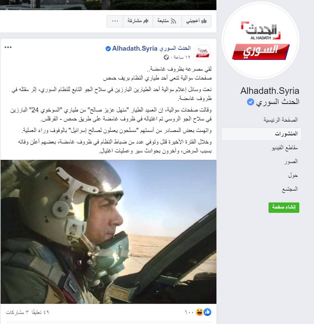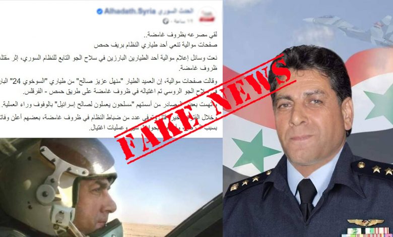 حقيقة خبر ” مقتل أحد الطيارين البارزين في سلاح الجو السوري في ظروف غامضة “