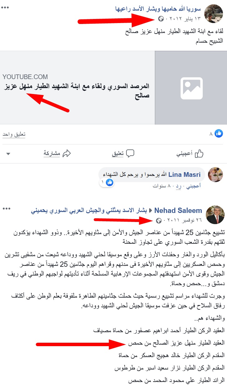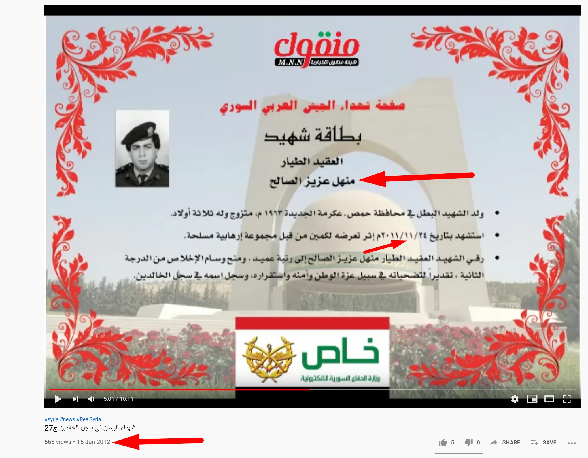وببحث عكس السير عن اسم الطيار (منهل عزيز صالح) تبين أنه قتل عام 2011، وليس قبل أيام كما يشاع.