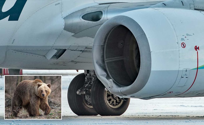 أدى اصطدام طائرة بوينغ إلى نفوق أنثى دب بني على الفور أثناء هبوطها في ساعة مبكرة من صباح يوم السبت الماضي، مما أدى إلى تعرض الطائرة للخطر وتعطلها.