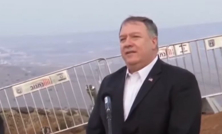 بومبيو من الجولان : هو جزء من إسرائيل .. تخيلوا الضرر الذي سيحلق بالغرب إن سيطر عليه بشار الأسد ! ( فيديو )