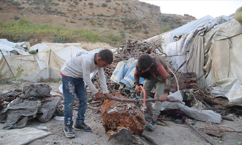 ويلفت أبو محمد إلى أن الظروف الجوية تزداد سوءًا خلال فصل الشتاء، بينما العائلة لا تمتلك أي مواد تدفئة باستثناء الحطب. (ANADOLU)