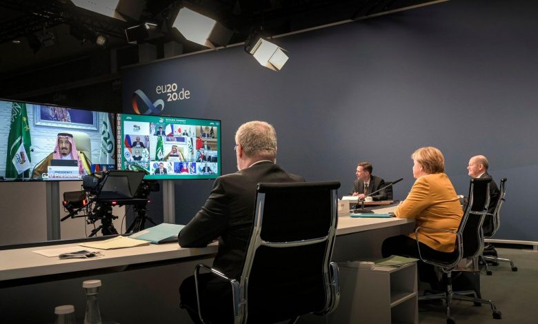 وقالت ميركل، السبت، في رسالة بالفيديو مسجلة قبل بثها إلى القمة الافتراضية للاقتصاديات الأقوى في العالم بقيادة المملكة العربية السعودية: “إذا وقفنا معاً في جميع أنحاء العالم، فيمكننا السيطرة على الفيروس والتغلب عليه وعلى عواقبه، ولهذا فالجهد المبذول في هذا الاتجاه جهد مستحق”.