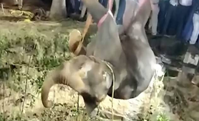 أظهر مقطع فيديو بالهند نجاح عملية سحب فيل من بئر بئر يبلغ عمقها 55 قدماً، بعد محاولة استمرت 14 ساعة، وفق ما نشرته صحيفة “ديلي ميل”.