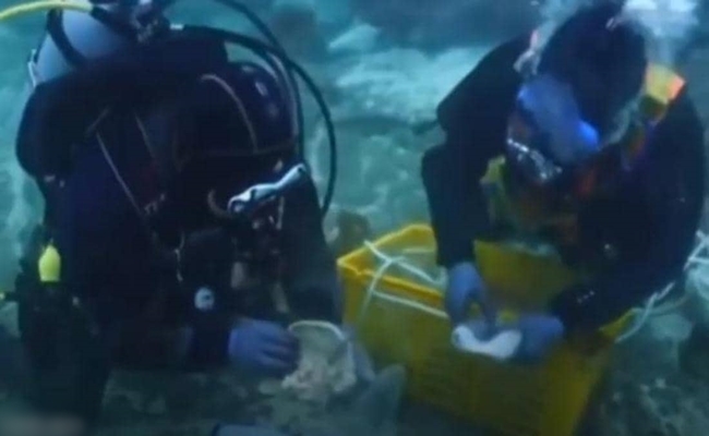 وحرص فريق الغوص الذي شارك في عملية استخراج الكنز على الأواني الفخارية، حيث وضعت في سلال ورفعت إلى الأعلى خارج الماء.