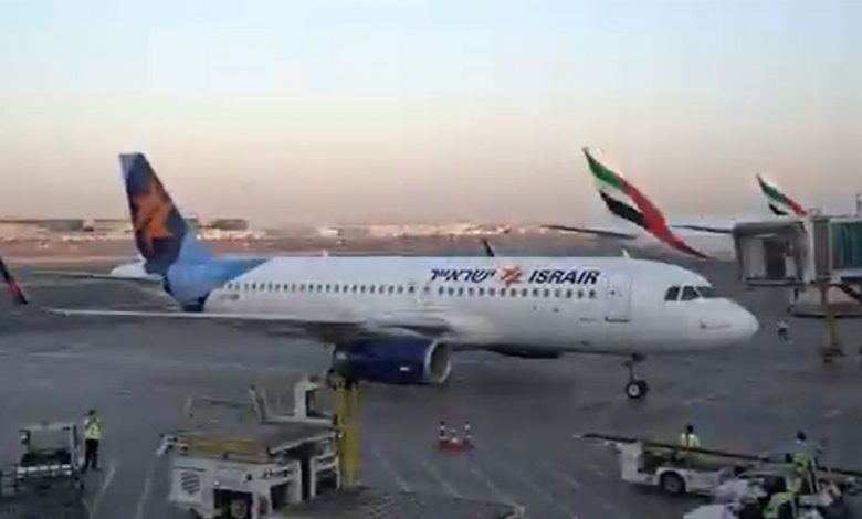 نشر مكتب دبي الإعلامي مقطع فيديو على صفحته الرسمية بتويتر، يظهر وصول أول رحلة تجارية إسرائيلية لمطار دبي متمثلة برحلة شركة “إسرآير” من تل أبيب.