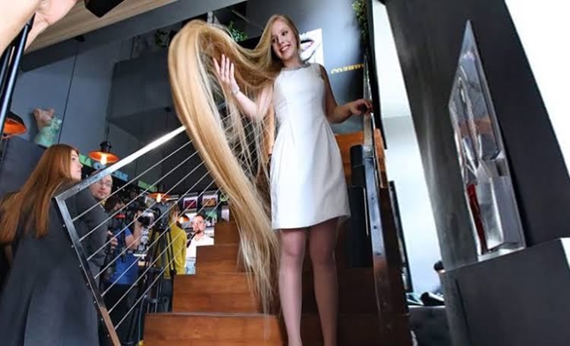 ونالت الفتاة لقب رابونزل الحية بسبب شعرها البالغ طوله 180 سم ووفقا لرواية الفتاة التي نشرتها “ديلي ميل”، أنه للحفاظ على جمال شعرها يتعين عليها أن تنفق حوالي 75 جنيها إسترلينيا شهريا على الشامبو والبلسم وزيت جوز الهند.