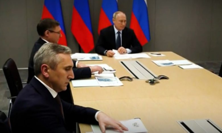 قبيل الاجتماع، لاحظ بوتين أن المقعد بجانبه والمخصص لليونيد ميخيلسون، رئيس مجلسي إدارة شركة الغاز “نوفاتيك” وشركة “سيبور” للصناعات البيتروكيميائية، لا يزال شاغرا، فسأل عنه.