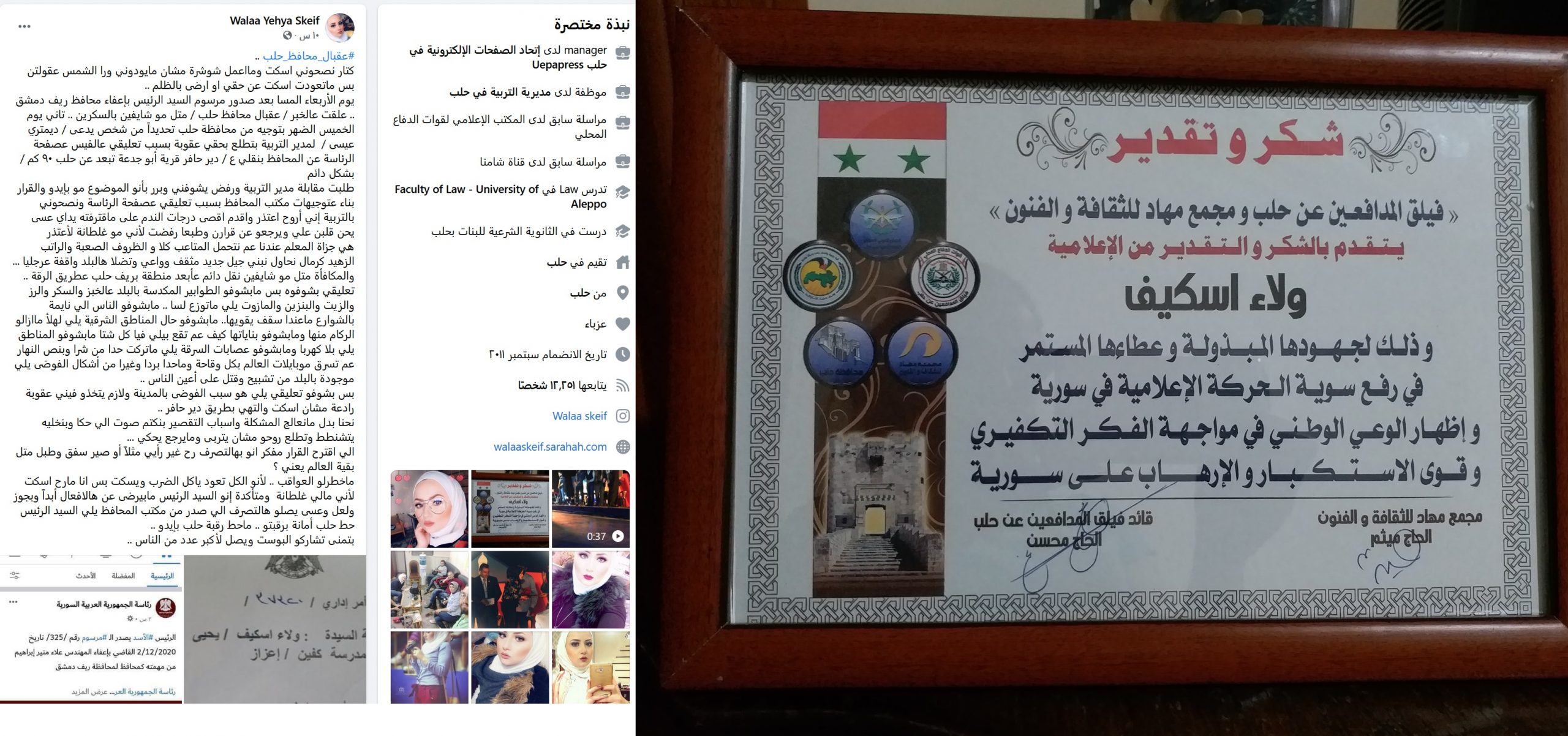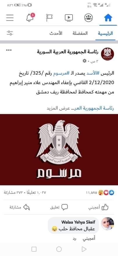وكانت المعلمة علقت على صفحة “الرئاسة السورية” التي نشرت معلنة إقالة بشار الأسد لمحافظ ريف دمشق، بأمنية مفادها “عقبال محافظ حلب”.