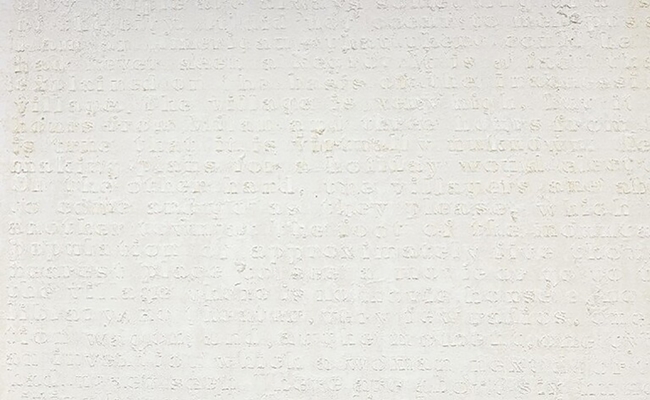 وعند الفحص الدقيق للوحة البيضاء، يمكن في الواقع رؤية نص باهت من مقال ناشط الحقوق المدنية جيمس بالدوين عام 1953 حول الاستعمار بعنوان غريب في القرية.