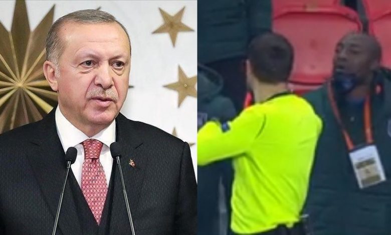 وقال أردوغان في تغريدة عبر تويتر: “أدين بشدة العبارات العنصرية التي تعرض لها عضو الجهاز التدريبي في ممثلنا فريق باشاك شهير”.