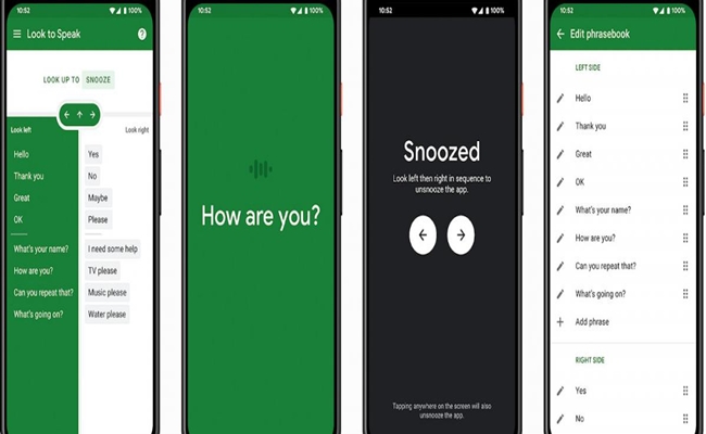 يوضح معالج النطق واللغة في غوغل، “ريشارد كيف”، في منشور بالمدونة: “باستخدام التطبيق، يتعين على الأشخاص ببساطةٍ، النظر إلى اليسار أو اليمين أو الأعلى؛ لتحديد ما يريدون قوله من قائمة العبارات”.