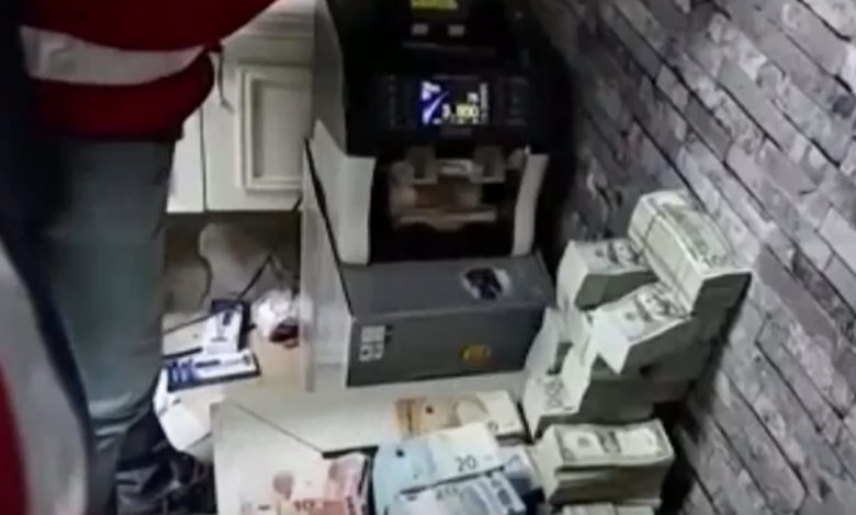 وعثرت الشرطة على مبلغ مليون و850 ألف يورو (17 مليون ليرة تركية) ومليون و200 ألف دولار، و31 قطعة ذهبية و7 سبائك ذهبية، و250 شريحة هاتف دولية، ومعدات أخرى.
