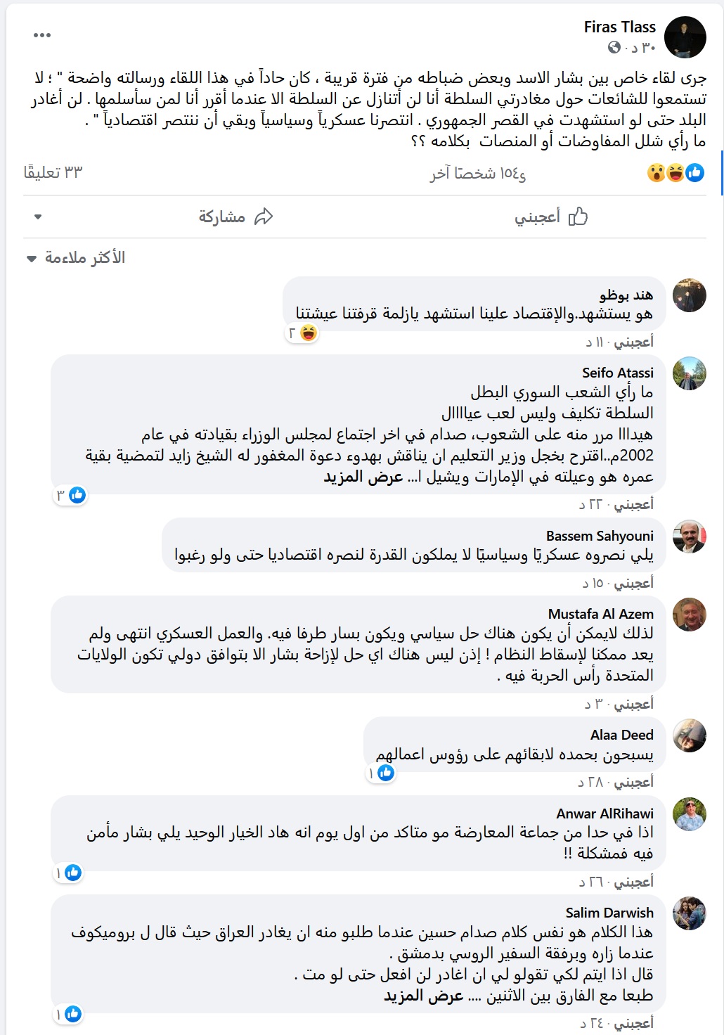 لا مصداقية لعائلة طلاس. نهبوا البلد عايشين في فرنسا