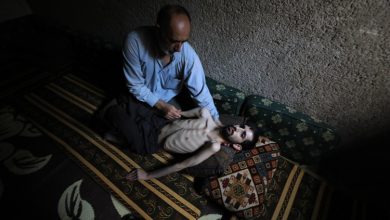 وزنه 35 كيلو غراماً فقط .. مناشدات لمساعدة شاب سوري مصاب بشظايا في رأسه