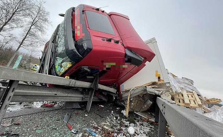 وقالت شرطة المرور، مساء السبت، إن الشاحنة عبرت الحاجز القائم في منتصف الطريق قبالة بلدة هيلمبريشتس (الدائرة المحلية هوف)، بولاية بافاريا، ما أدى إلى انقلابها على الطريق.