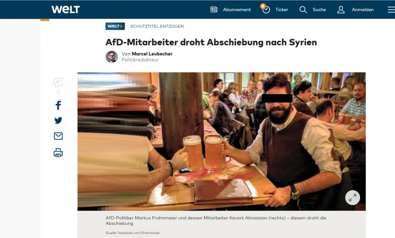 وذكرت صحيفة “دي فيلت” أن مكتب الهجرة واللاجئين سحب صفة “لاجئ” من السوري كيفورك ألماسيان الذي كان وصل ألمانيا من سويسرا عام 2015، وحصل على حماية ثانوية (إقامة السنة) بعد عام.