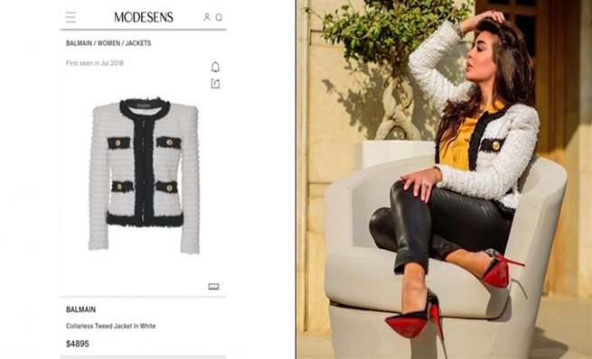ويبلغ سعر الجاكيت من دار أزياء “Balmain”, حوالي 4895 دولاراً، أي ما يعادل حوالي 77.000 جنيها مصريا.