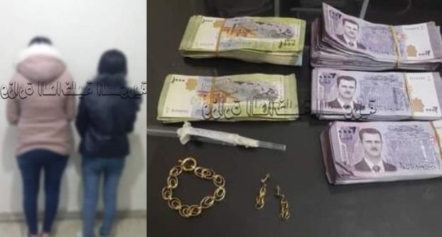 وأضافت أنه “تبين للسلطات أنها تدعيان ( رؤى . م ) و( فداء . ص ) عثر بحوزتهما على البلاك الذهبي المسروق مع زوج حلق وإبرة بضمنها مادة مخدرة، وبالتحقيق معهما اعترفتا بارتكابهما / 18/ حادثة سرقة مصاغ ذهبي بطريقة المغافلة من عدة محلات مجوهرات في محافظات ( دمشق وريف دمشق وحمص وحماة )، وبيع المصاغ الذهبي وتقاسم ثمنه فيما بينهما، وإن إبرة المخدر المضبوطة بحوزتهما قامتا بشرائها من صيدلية بمحافظة دمشق بقصد تخدير أحد الأشخاص عن طريق وضعها له ضمن القهوة وسلبه ما بحوزته”.