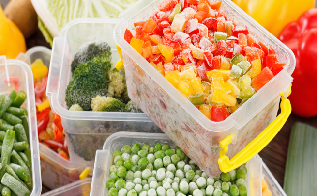 يعيش الخضار مثل الطماطم أو الفلفل في المجمد من ثلاثة أشهر وما يصل إلى عام. وعموماً وجدت دراسة نُشرت في مجلة Journal of Food Composition and Analysis أن الخضراوات المجمدة يمكن أن تحافظ على العناصر الغذائية بشكل أفضل من الخضراوات الطازجة الموجودة في الثلاجة، وكان على رأسها أطعمة مثل القرنبيط والذرة والسبانخ والبروكلي.