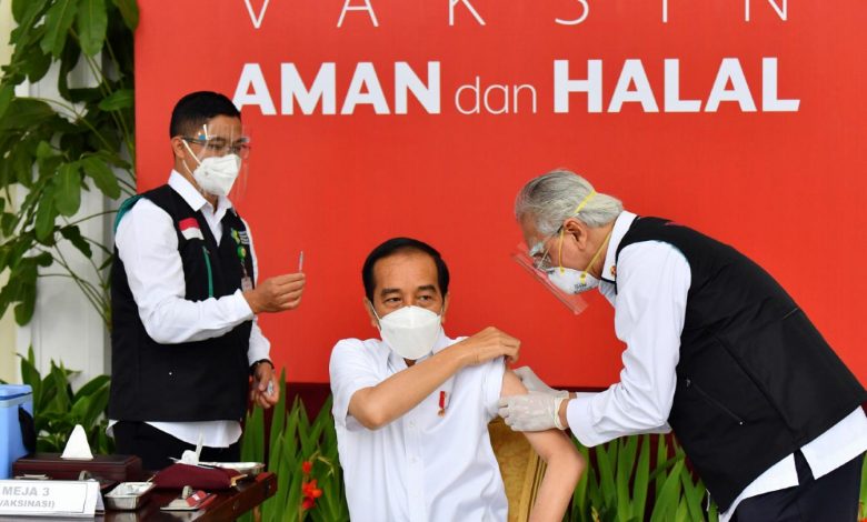 في أماكن أخرى من العالم، لمحاربة الحركة المناهضة لهذا النوع الجديد من التطرف، تلقى رئيس إندونيسيا مؤخرًا جرعة من اللقاح الصيني المضاد لفيروس كورونا أمام ملصق يعلن أن اللقاح آمن وحلال.