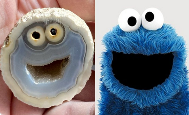 ويعد العقيق، الذي عُثر عليه في سوليداد، نقطة ساخنة من الأحجار الكريمة في جنوب البرازيل، وتبين أنه يشبه شخصية شهيرة من دمى شارع سمسم، ذات العيون الزرقاء.