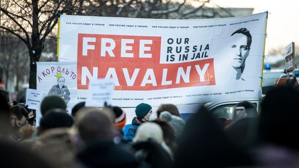 وحمل متظاهرون لافتات مكتوب عليها عبارات تنادي بالحرية لنافالني، وتوجهت المظاهرة الكبيرة إلى السفارة الروسية في برلين.