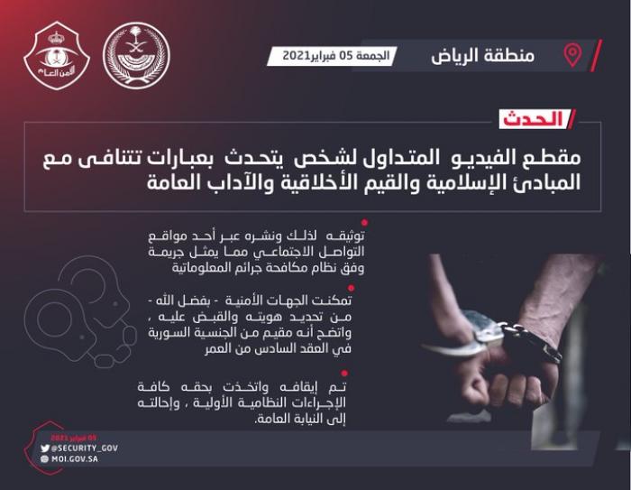 وكان الشخص المعني قد ظهر عبر مقطع فيديو من خلال تطبيق ”تيك توك“ يطالب فيها بوجود ”خمارات وبغايا“ في السعودية على غرار دول أخرى.