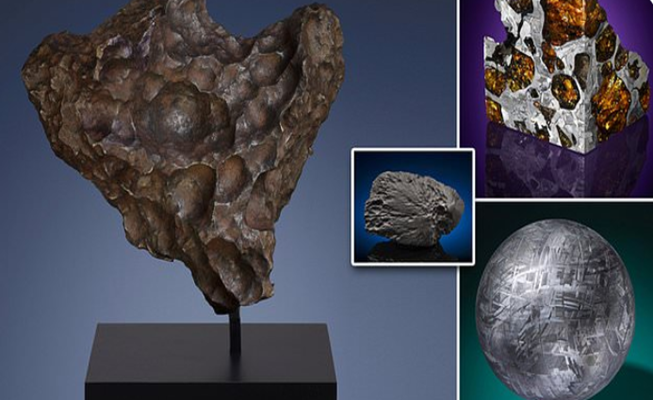 ومن بين هذه النيازك غير العادية، اكتُشفت كرة فضية متلألئة صُممت من نيزك وُجد في السويد نشأ من “قلب كويكب محطم”، وهي معروضة مقابل مبلغ ما بين 14000 دولار و18000 دولار.