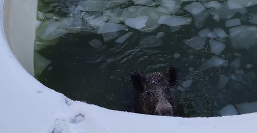 في ألمانيا .. فرقة إنقاذ تتدخل لمساعدة خنزير عالق في بركة متجمدة