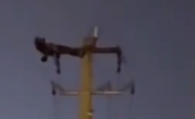 صيني يقوم بحركات رياضية فوق عمود كهرباء و يقطع التيار عن آلاف المنازل ! ( فيديو )