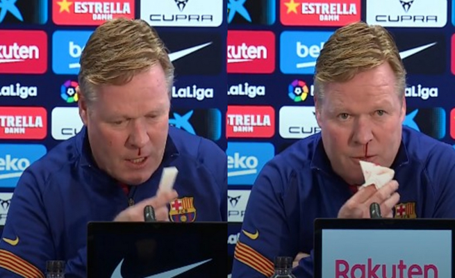 أصيب الهولندي رونالد كومان مدرب برشلونة الإسباني بنزيف دم من أنفه أثناء المؤتمر الصحفي، الجمعة، عشية المباراة المرتقبة أمام مضيفه إشبيلية ضمن الجولة الـ25 من “الليغا”.