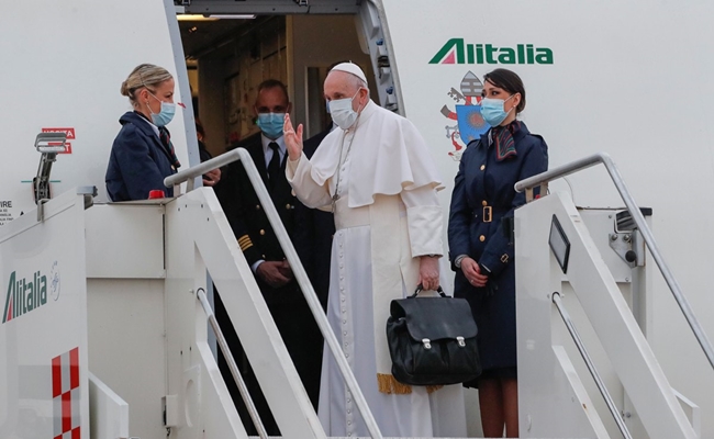 و وصل البابا فرانسيس، الجمعة، إلى العراق في أول زيارة من نوعها لهذا البلد، وسط تحديات أمنية وصحية غير مسبوقة، زادت من زخم الحدث، وهي أول زيارة للبابا البالغ 84 عاما إلى الخارج منذ انتشار جائحة كورونا.