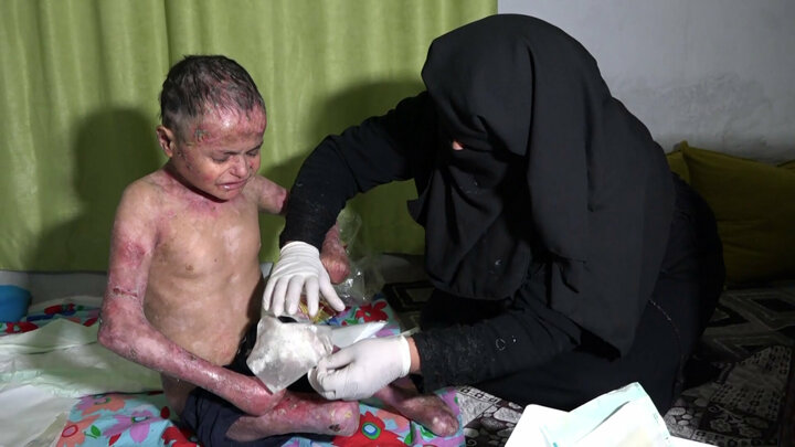 ويعاني علاء من آلام شديدة، بسبب التصاق الثياب بجسده، مما يضطره لخلع ملابسه باستمرار، لتضميد جروحه،
