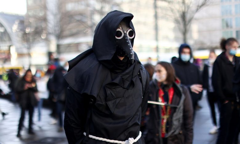 وكان العديد من المحتجين من أنصار حركة “كفير دينكن / Querdenken”، التي تنفي وجود جائحة كورونا وتناهض التطعيم.