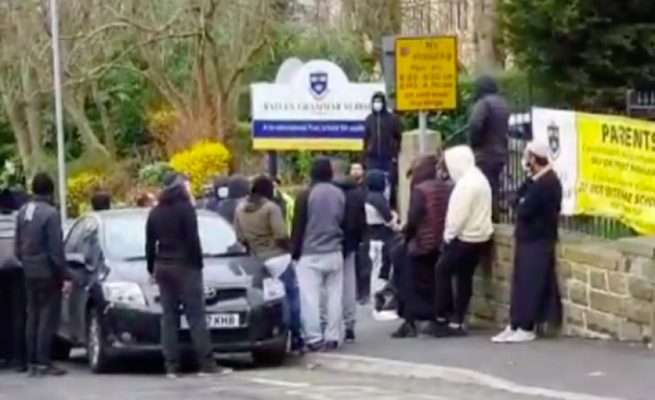 Muslims & Islamist networks have been calling for people to protest the Batley Grammar School in West Yorkshire, England to demand the firing of a teacher who allegedly showed Charlie Hebdo cartoons in a lesson. The school has immediately apologized. pic.twitter.com/Urmth6mxfZ