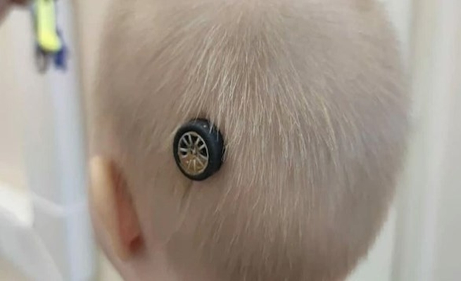 وأظهرت صور الأشعة السينية، العجلة على بعد ملليمترات قليلة من دماغ الطفلة، وقال الأطباء إن الطفلة محظوظة لأن العجلة لم تتسبب بأضرار للدماغ.