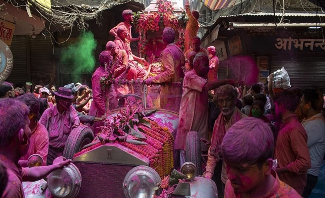 تجمع آلاف الهنود للاحتفال بمهرجان ”هولي“ في البلاد، بالرغم من ارتفاع حالات الإصابة بفيروس كورونا إلى أكثر من 60 ألف حالة.