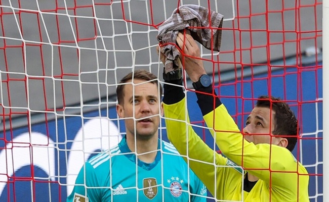 وحاول حارس مرمى بايرن ميونخ العملاق مانويل نوير، الذي كتب له الذود عن هذا المرمى في الشوط الأول، تدارك الموقف كي لا تتأخر المباراة، فقام بربط الشباك بمنشفه.